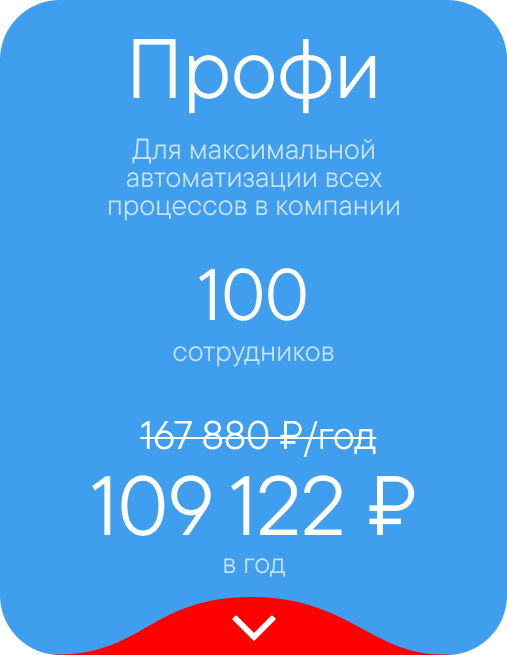 — Акция действует для клиентов тарифа Энтерпрайз, повышающих свой тариф до Энтерпрайза с большим количеством пользователей, при покупке на 1 год.